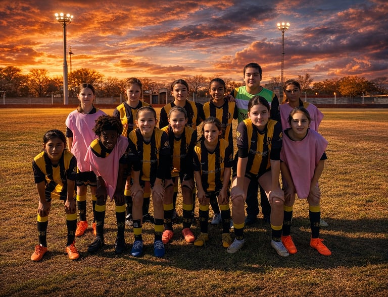 Un torneo de fútbol infantil en Pilar, Santa Fe, donde niños y niñas disfrutan del deporte y la amistad.